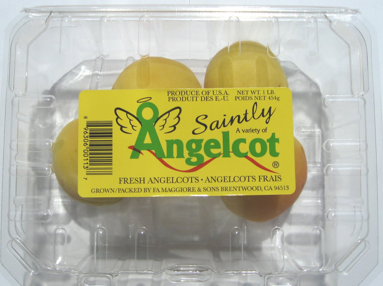 Angelcots® in the clamshell package. (Comes filled with fruit, but I already ate a few!) |