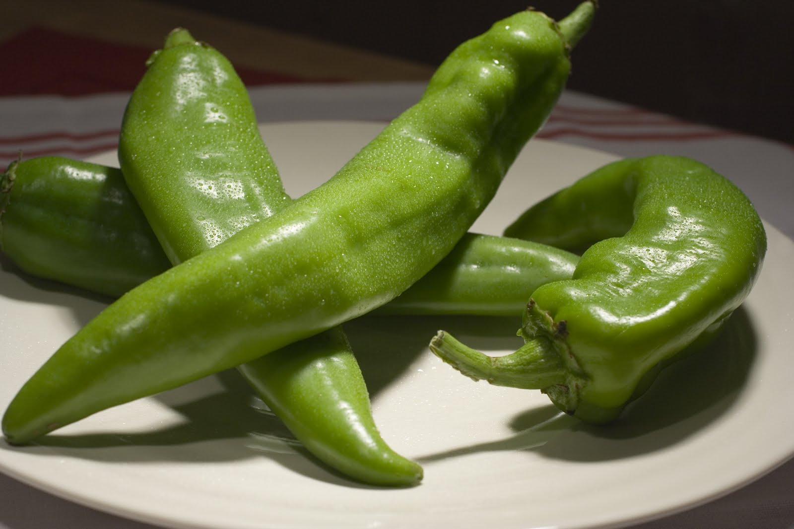 There is a place called Hatch, New Mexico — about 40 miles north of Las Cruces — where they grow these amazing chile peppers. They look similar in shape and color to regular green Anaheim chiles, but tend to be more flavorful and can be quite spicy, depending on the variety.